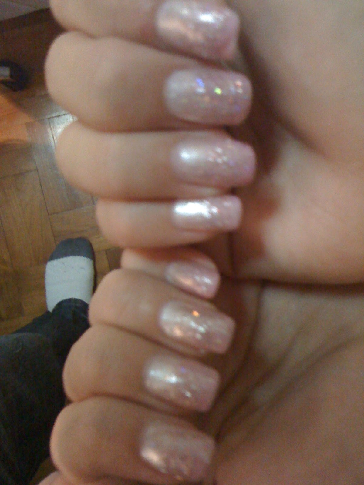 Sis gluing the acrylic nails on for me...
